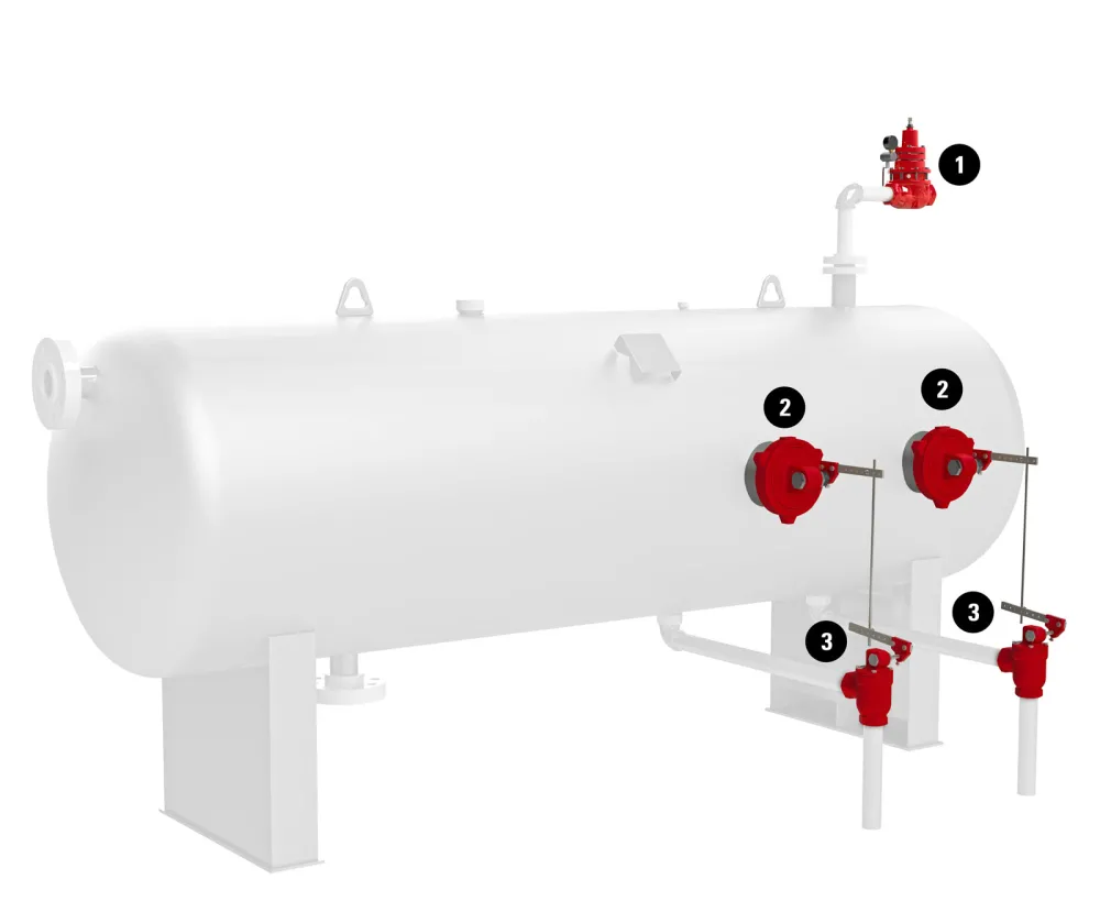 In a horizontal three-phase separator, fluid enters the vessel through an inlet, and immediately hits an inlet diverter. This sudden impact provides the initial separation of liquid and vapor. In the liquid section of the vessel, the emulsion separates and the oil starts forming a layer (or “pad”) above the water. The oil spills over the top of the weir, and then a level controller, which operates the oil dump valve, controls its level. An interface level controller also senses the height of the oil-water interface. This controller signals another dump valve to release as much water from the vessel as is needed to maintain the oil-water interface at the pre-determined height. Meanwhile, gas rises to the top of the separator. It flows horizontally and exits thru a mist extractor to a back pressure valve, which maintains constant vessel pressure.