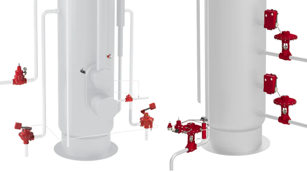 A heater treaters houses an internal firetube, which uses supply gas to heat the produced fluid inside the vessel. Producers often use a low pressure control valve to regulate the temperature of the fluid. Heater treaters come in horizontal or vertical orientations.