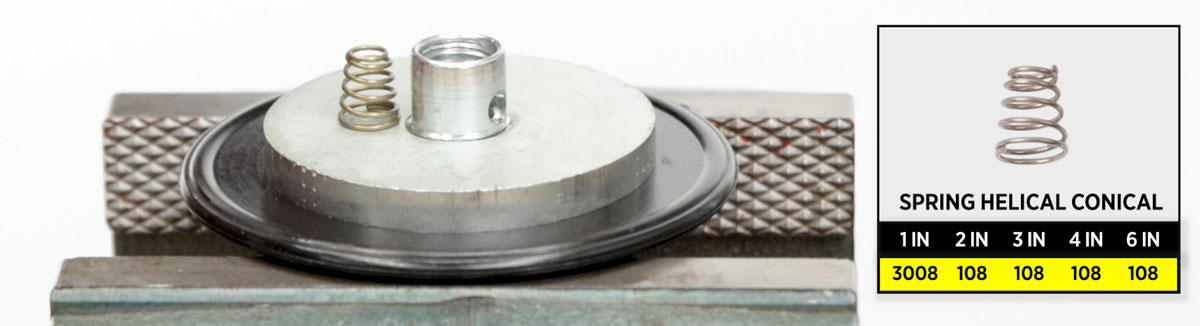 - Insert the (#108) spring into the diaphragm plate, wide end down.