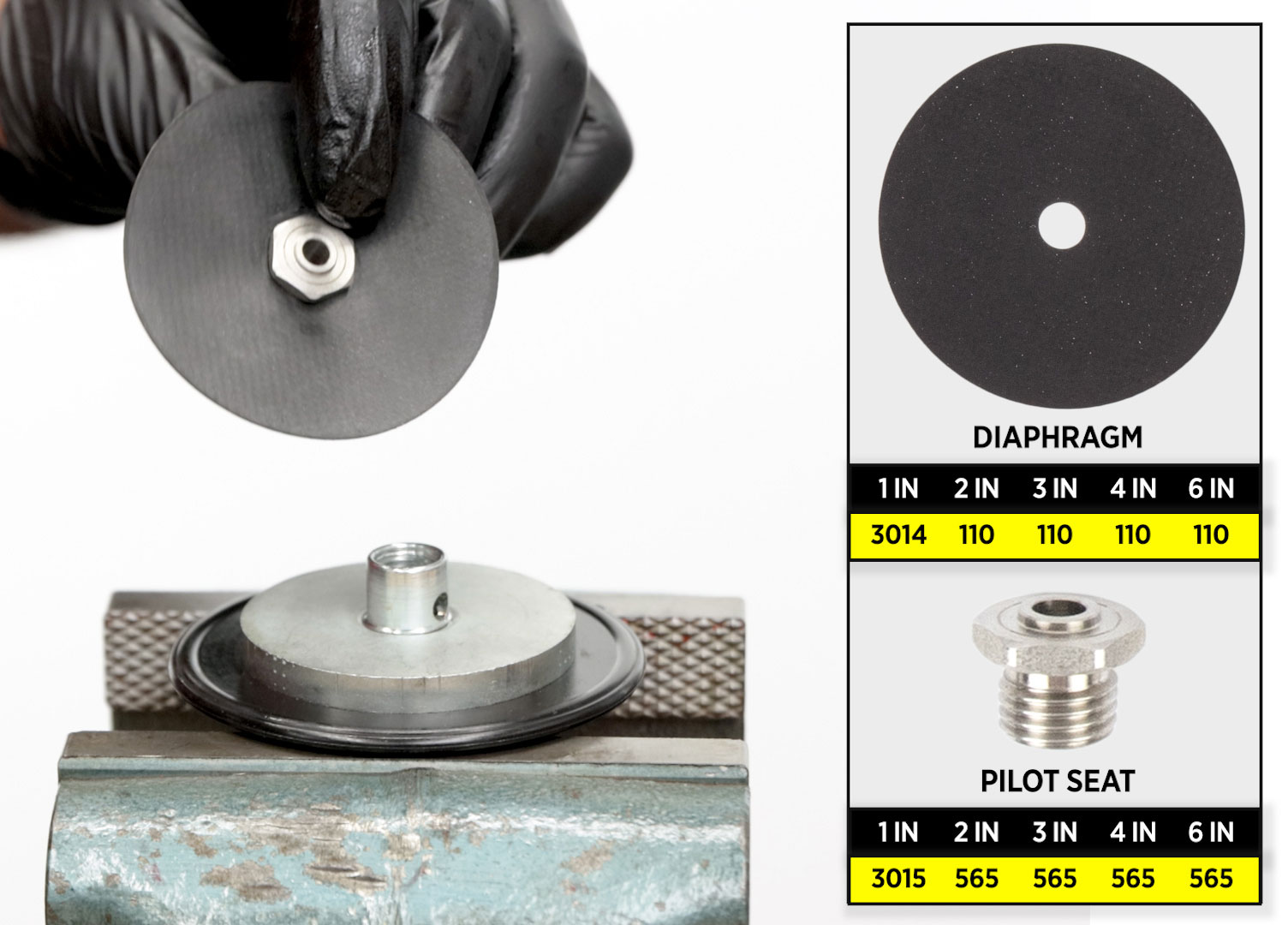 - Install the (#110) diaphragm onto the (#565) pilot seat.