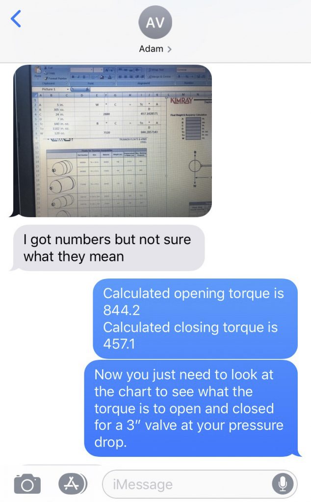 Troubleshooting text messages between Flowback Operator Adam and Kimray Account Manager Kyle