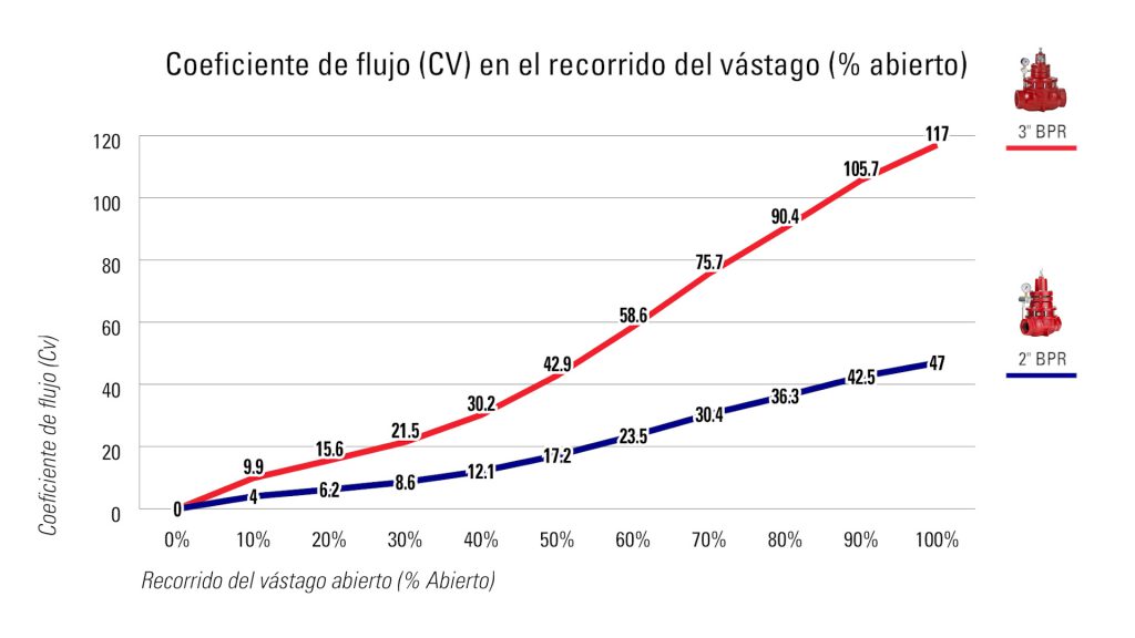 A medida que se abre una válvula, el Cv aumenta hasta que la válvula está completamente abierta, donde alcanza su Cv más alto posible o 100% de Cv abierto.